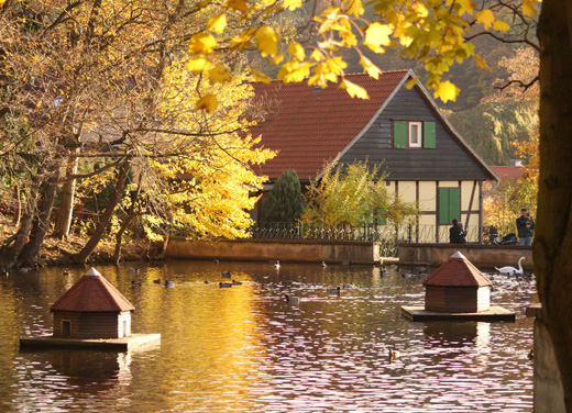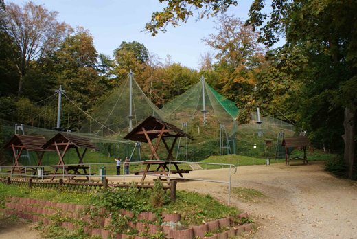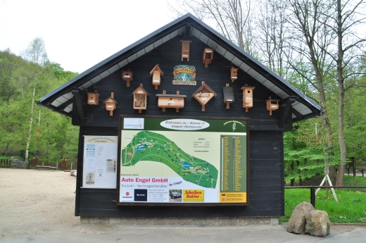 südöstlich der Stadt. Auf einer Fläche von 8 Hektar können Sie in großen Freianlagen viele in Deutschland beheimatete Tiere aus nächster Nähe bestaunen, die man sonst in den Wäldern nur noch selten oder gar nicht zu Gesicht bekommt. Ein Großgehege beherbergt Rot-, Dam- und Muffelwild, auch Schwarzwild wird gehalten. In verschiedenen Volieren finden sich Raben, Finken und Jagdfasane. Wildenten und Gänse komplettieren den Vogelbestand. Die neuen riesigen Netzgittervolieren dienen der Haltung von Greifvögeln und auch der Auswilderung gesund gepflegter Tiere. Ein kleines Highlight gerade für unsere Kleinsten ist die Mäusevilla, in der sich die kleinen Schnurrer wie "Zuhause" fühlen und von Zuschauern ganz nah beobachtet werden können.